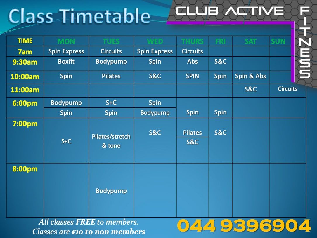 Everyone is welcome to join our free online classes while we are closed just click on our Facebook page Club Active Mullingar